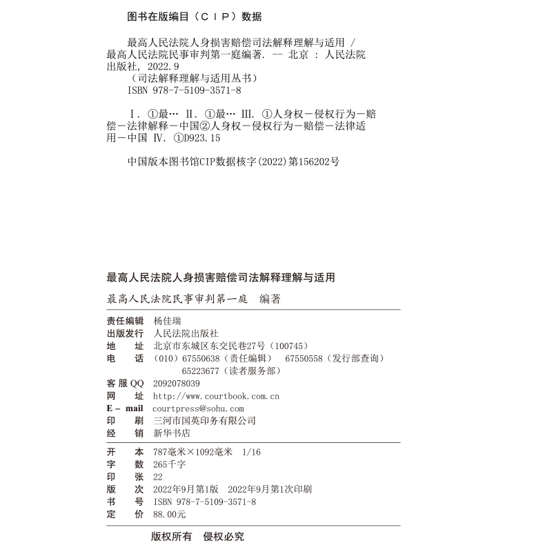 最高人民法院民事审判第一庭 最高人民法院人身损害赔偿司法解释理解与适用 人身损害赔偿司法解释理解与适用 2025适用 正版