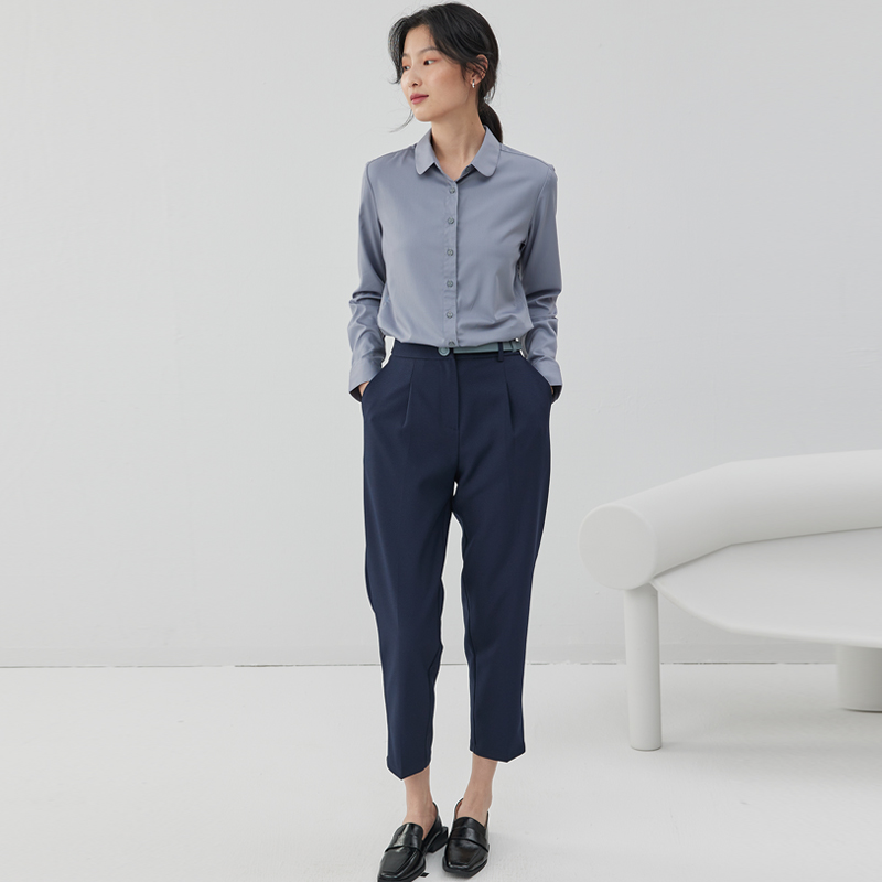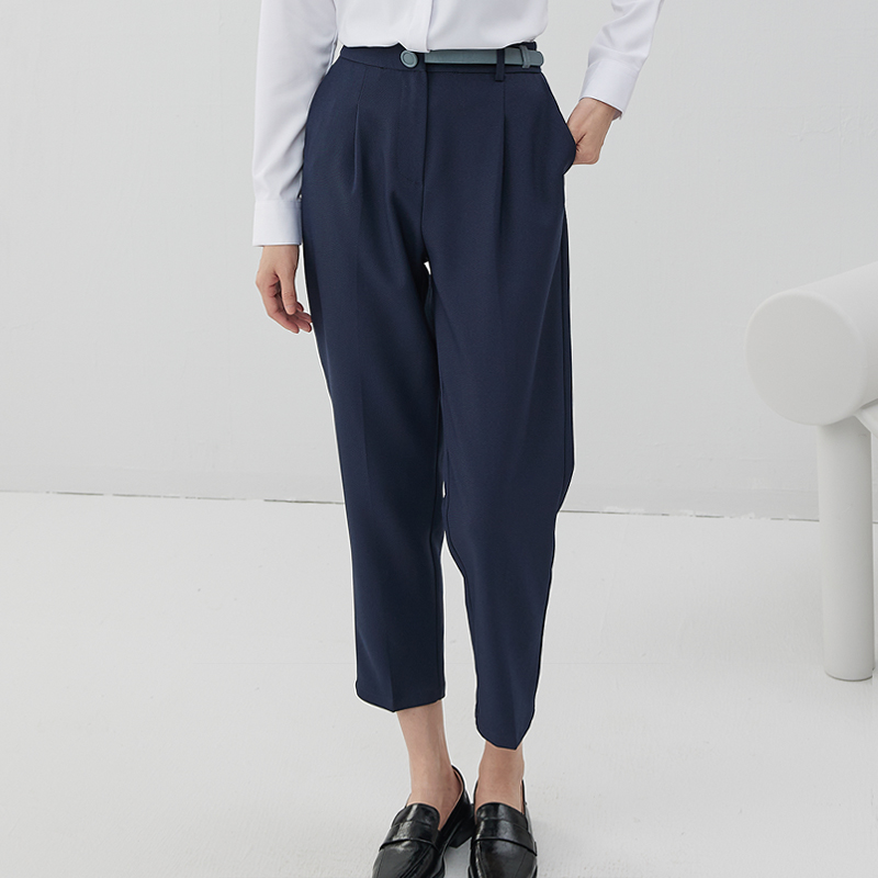 新款 女秋季 设计感正装 九分裤 宿·色西装 显瘦藏青色小哈伦裤 裤