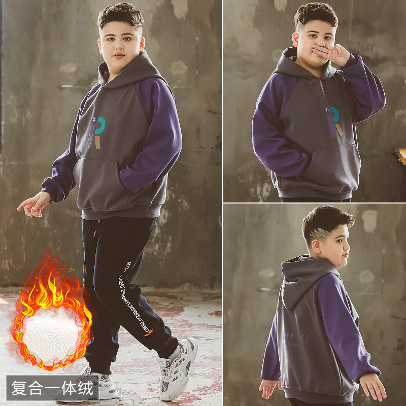 冬季 男童秋装 连帽卫衣加厚儿童加肥加大宽松衣服 清仓胖童装 特价