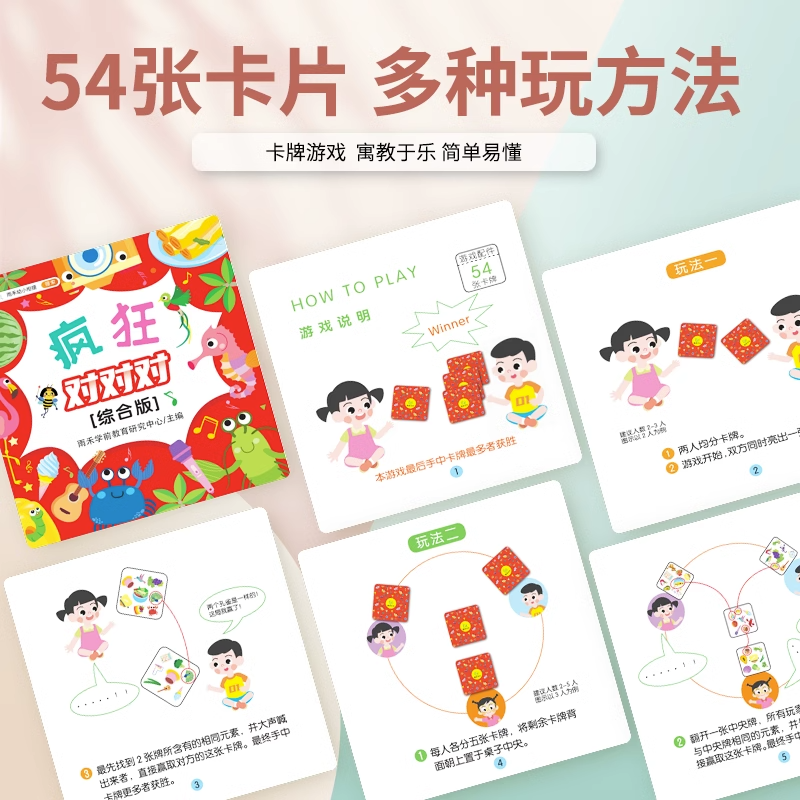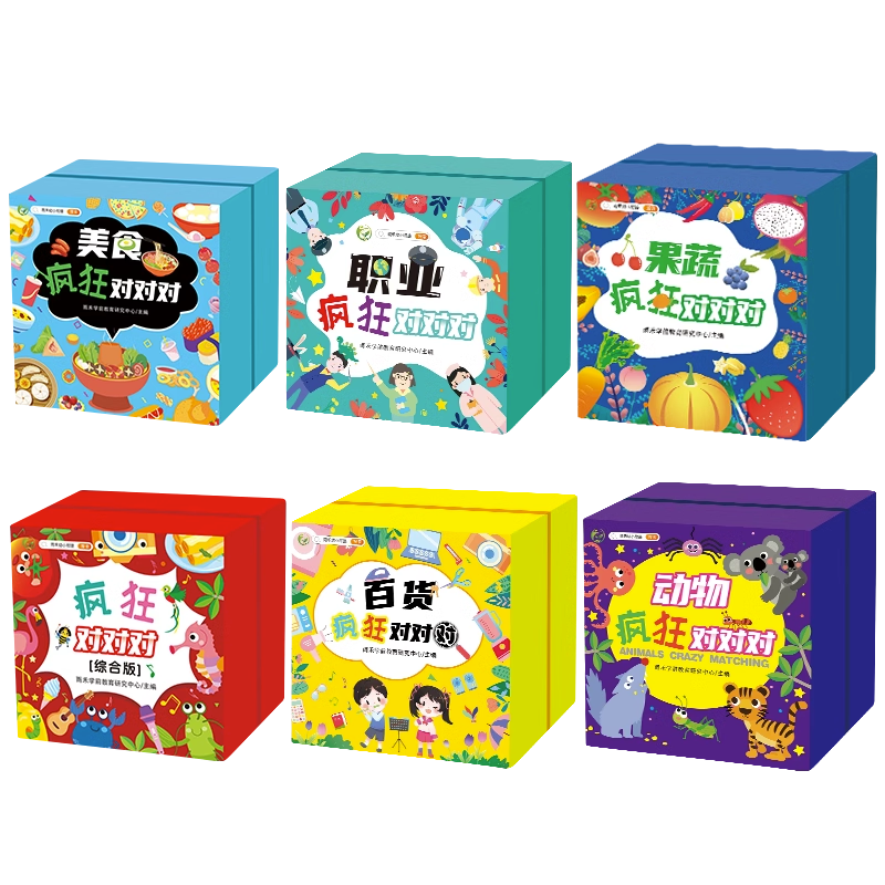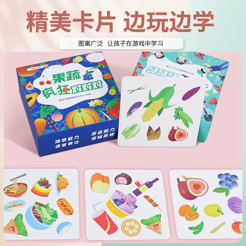 6岁益智玩具亲子互动专注力训练儿童纸牌游戏牌思维训练亲子互动玩具 动物职业美食果蔬百货疯狂对对对碰卡片3 汉知简官方直营