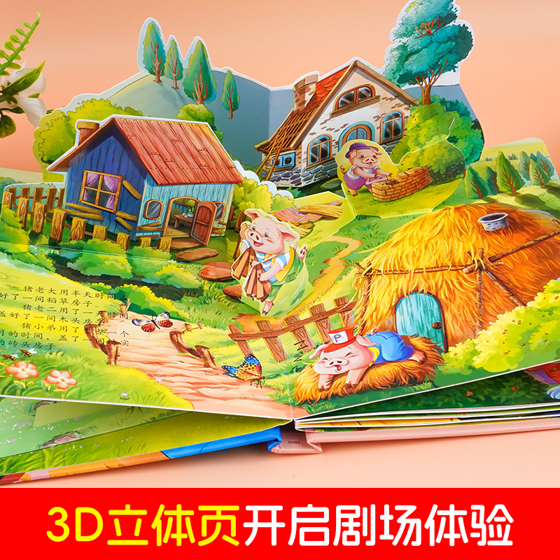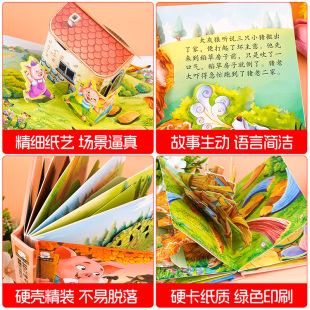 三只小猪睡前故事精揭秘童话翻翻书立体洞洞书宝宝0 3岁读物儿童3d图书安徒生格林童话启蒙认知撕不烂早教婴幼儿硬壳绘本早教学习