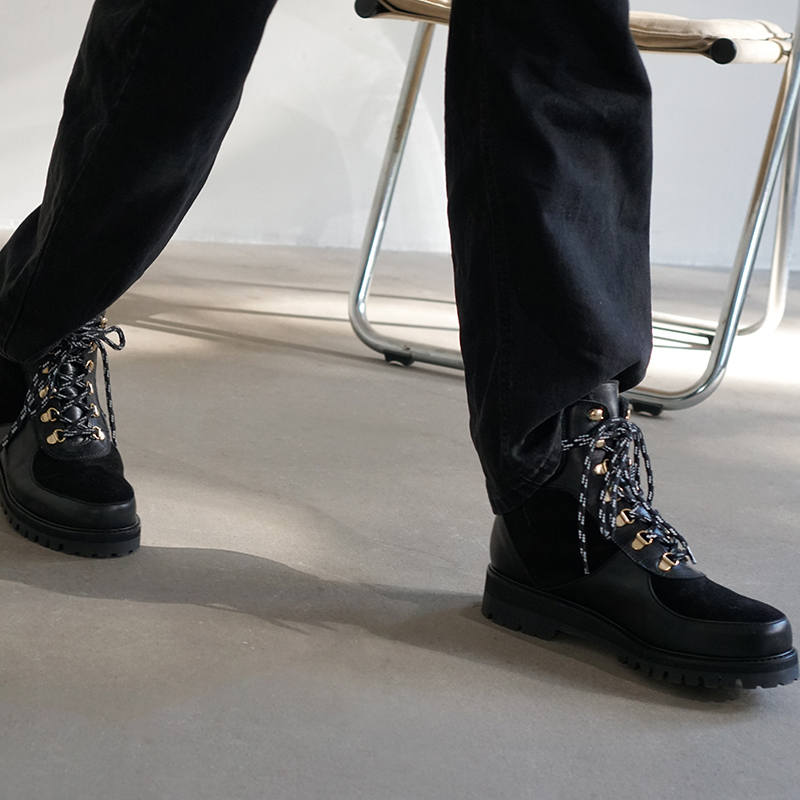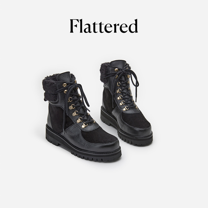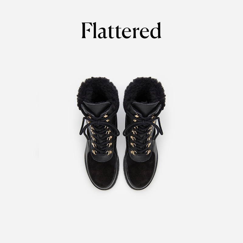 Flattered Linn女士牛皮毛一体马丁靴手工羊毛雪地靴厚底系带短靴