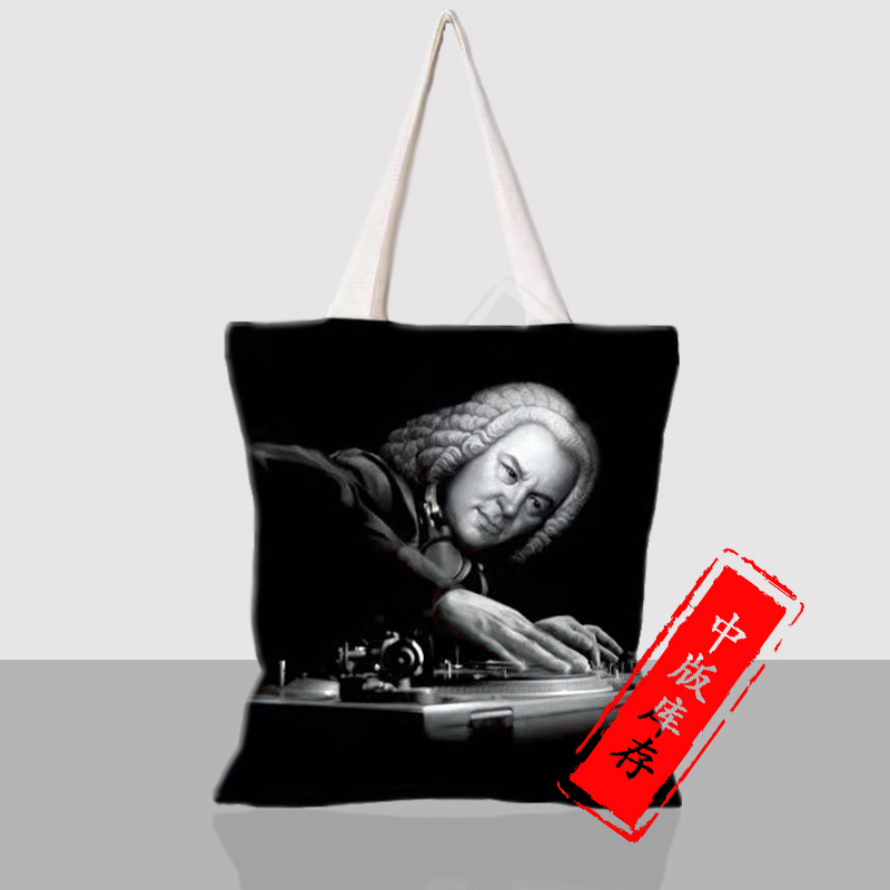 音乐家 乐谱背包 巴赫 德国骑熊士手提袋 帆布带拉链内兜 书包 促销