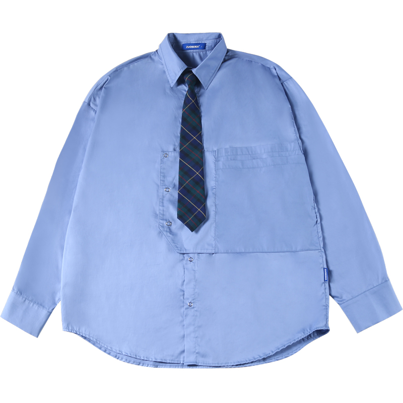 韩系设计感小众宽松纯色上衣 秋冬新款 佐贝卡潮牌蓝色衬衫 女长袖