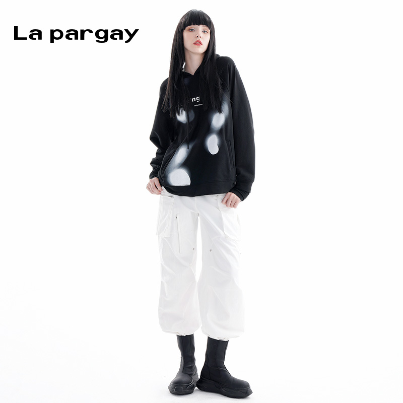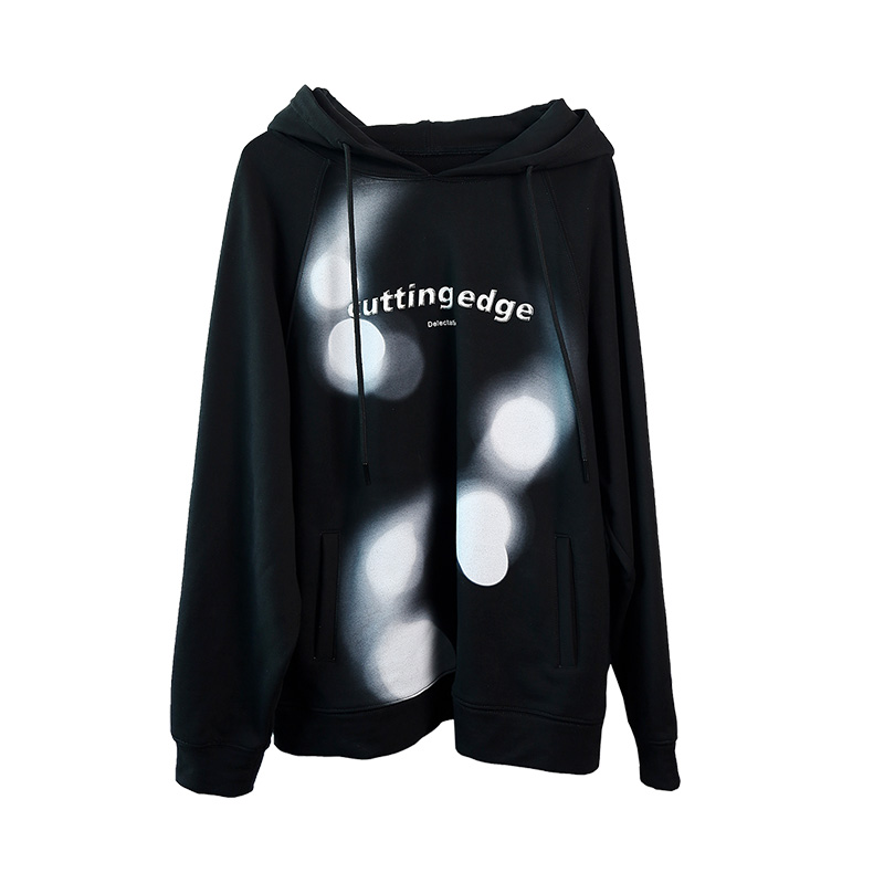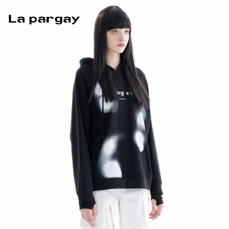 连帽卫衣2025春季 时尚 新款 黑色个性 休闲上衣 女式 纳帕佳印花长袖