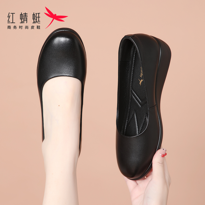 真皮妈妈鞋 红蜻蜓女鞋 2025新款 软底不累脚通勤单鞋 浅口坡跟小皮鞋