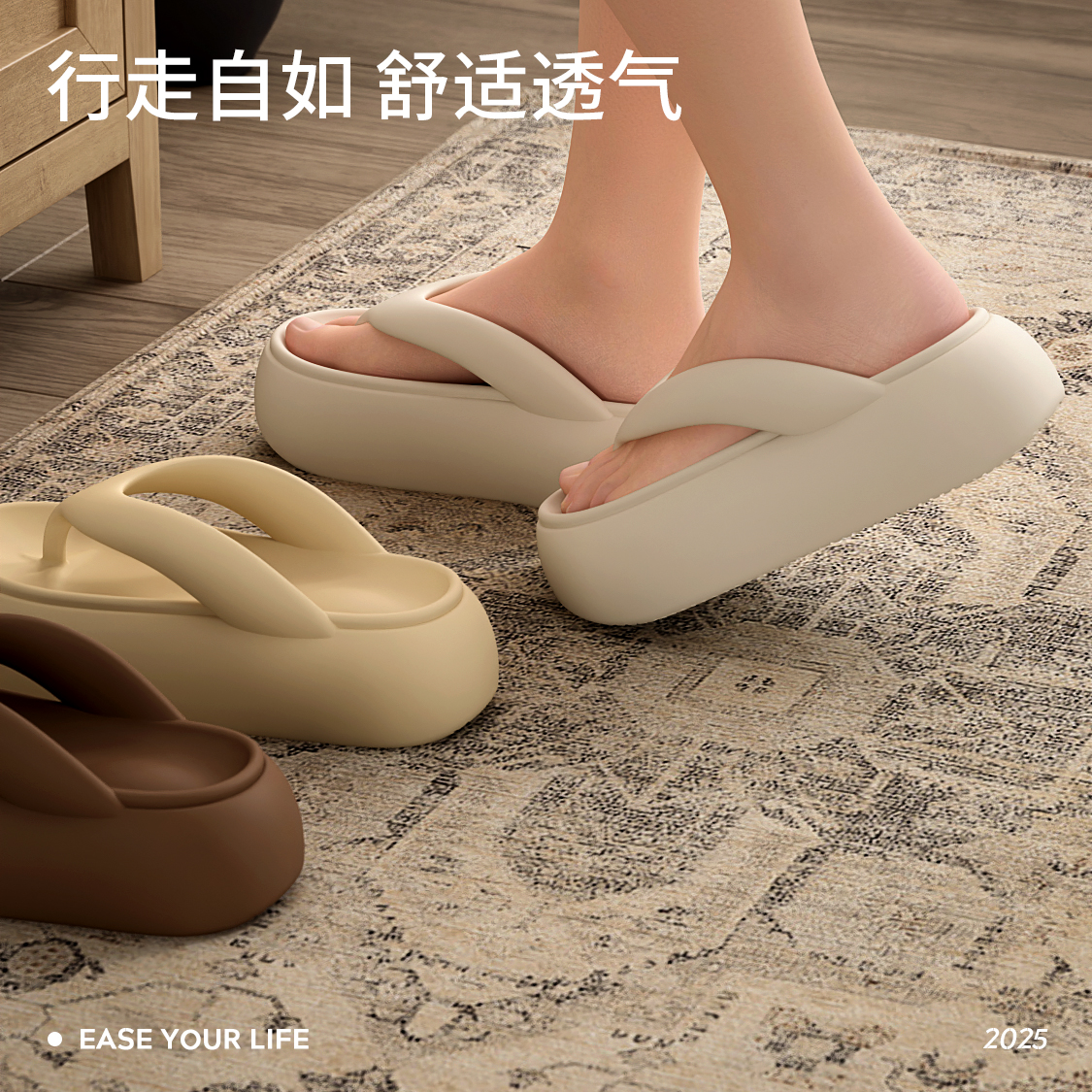 厚底增高凉鞋 外穿沙滩夹脚凉拖鞋 时尚 eva踩屎感软底人字拖女夏季