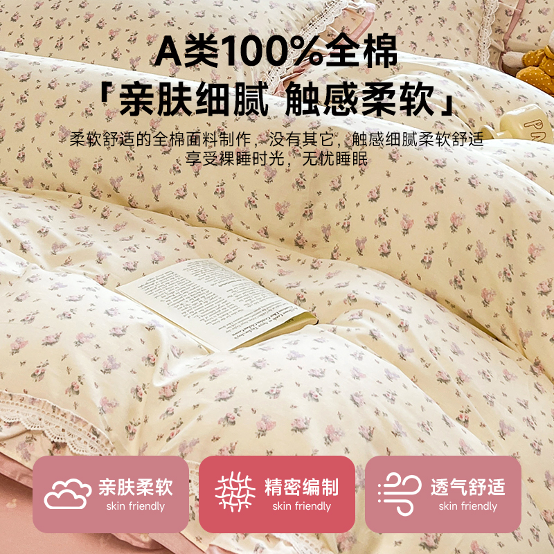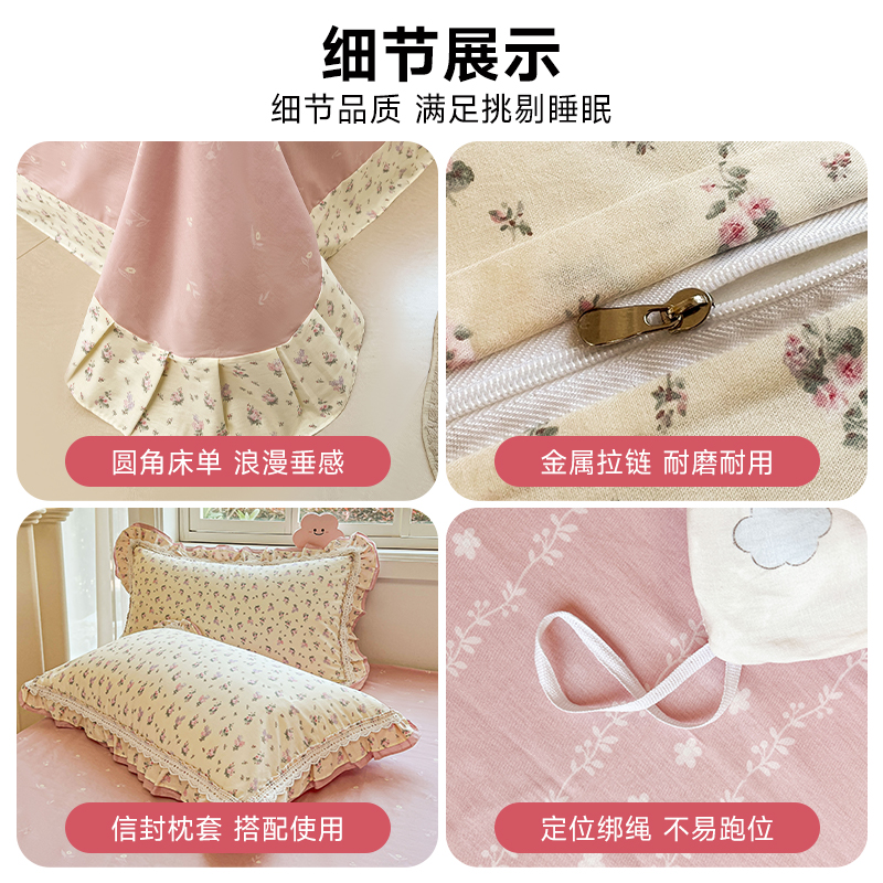 A类纯棉四件套全棉床上用品花边款 三件套 被套宿舍床单2025新款