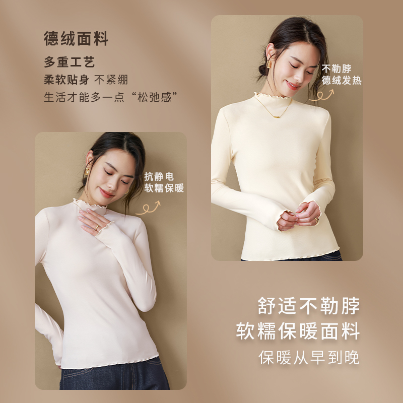 长袖 班尼路S&K系列木耳边内搭打底衫 修身 新款 t恤上衣H 女2025秋季