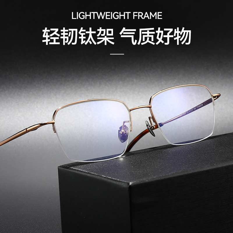 超轻半框眼镜近视男款 可配度数防蓝平光镜光斯文眼睛架理工男眼睛