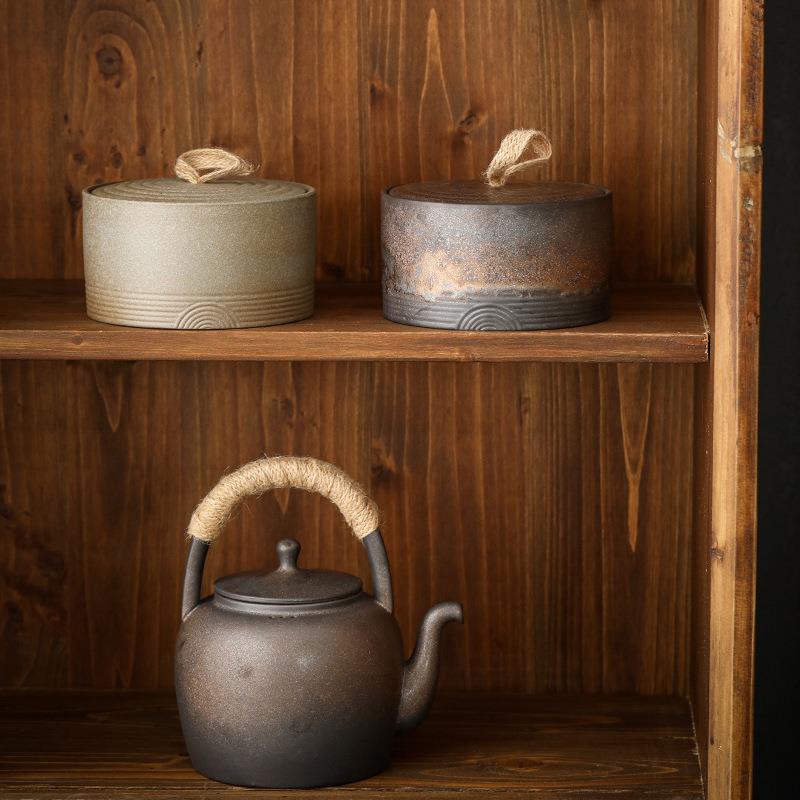 朴风茶叶罐陶瓷储物罐日式 粗陶存茶罐复古密封茶仓高温还原烧