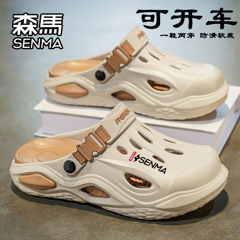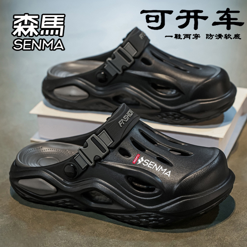 运动开车两穿涉水踩屎感凉鞋 外穿防滑防臭半拖鞋 男夏季 森马洞洞鞋