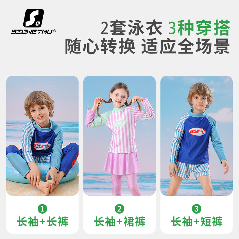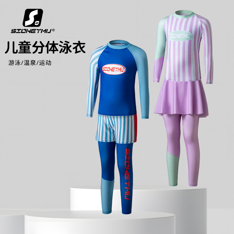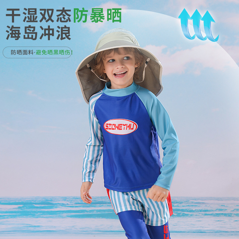 儿童泳衣裤 男童分体泳衣A类男孩女童沙滩温泉游泳衣防晒宝宝长袖