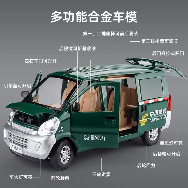 24五菱货拉拉合金汽车模型仿真快递车邮政货车儿童玩具车摆件
