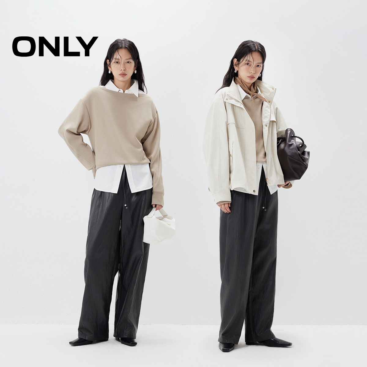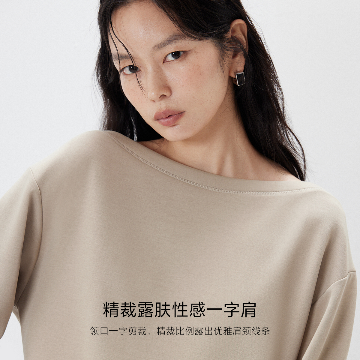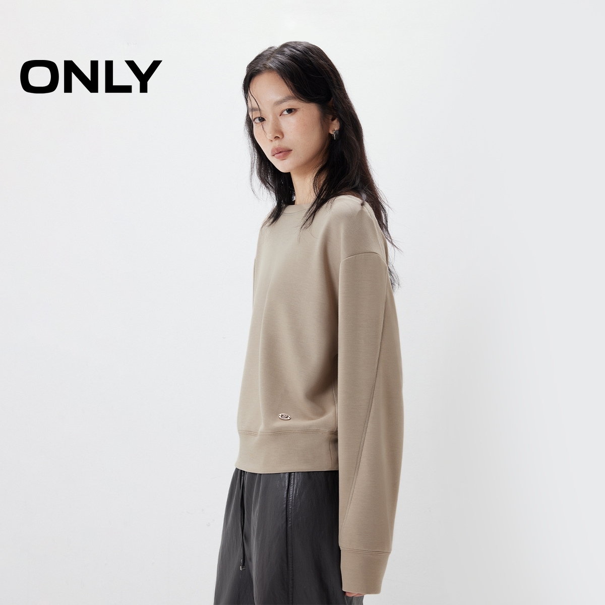 饰纯色卫衣女 性感一字领宽松舒适亲肤字母装 ONLY2025秋季 新款
