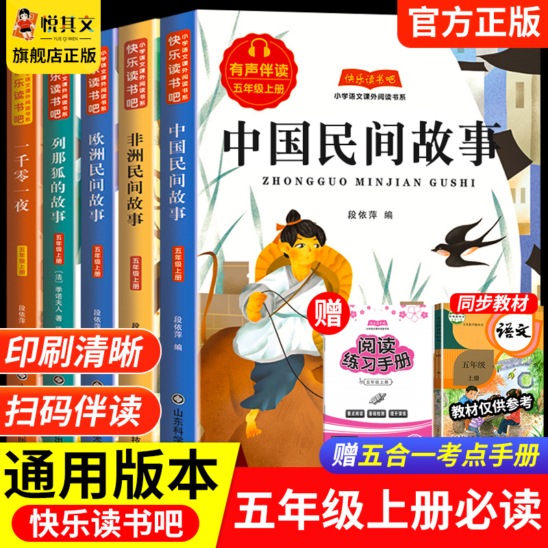 故事一千零一夜小学生五年级课外阅读书籍L 快乐读书吧五5年级上册必读中国民间故事非洲民间故事欧洲民间故事列那狐 现货速发