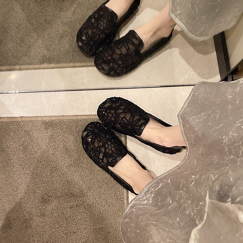 薄款 仙女风豆豆鞋 网鞋 软底镂空老北京布鞋 女蕾丝网面浅口单鞋 夏季