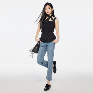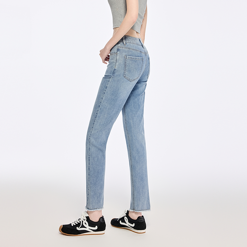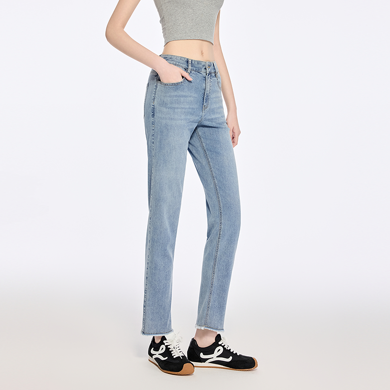 女半松紧腰长裤 森马牛仔裤 夏季 2025新款 森柔牛仔 直筒裤 商场同款