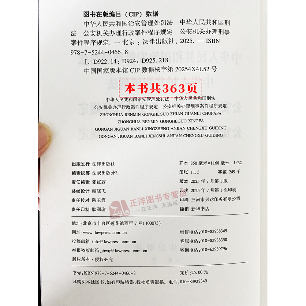 公安机关办理行政案件 治安管理处罚法刑法 刑事案件程序规定 四合一 社9787524404668 正版 法律出版 2025新书
