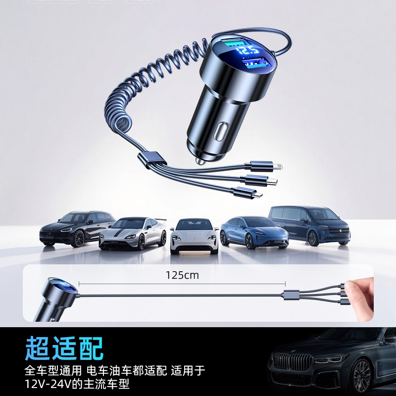 适用华为120W车载充电器手机超级快充转换插座三合一伸缩线点烟器