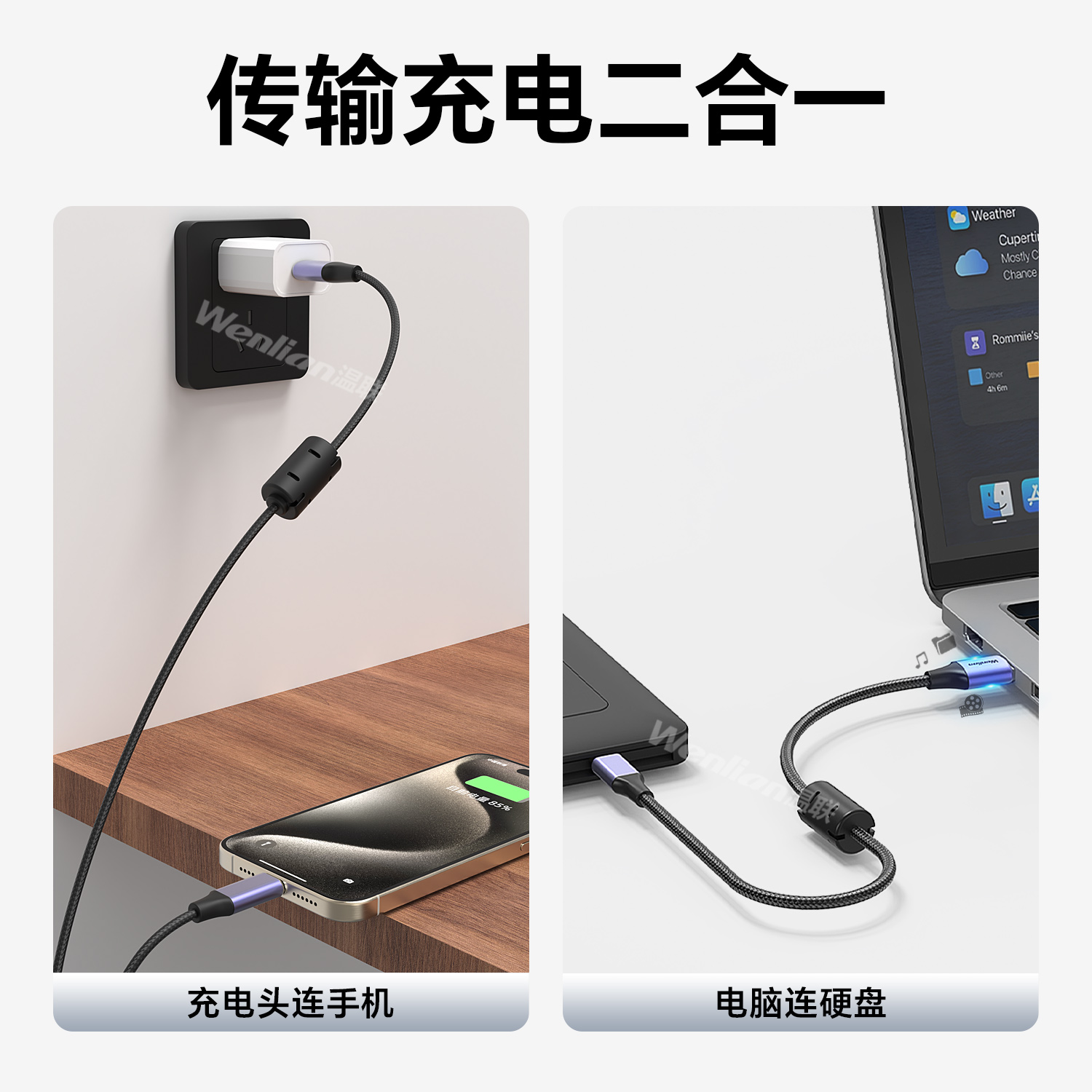 温联适用于阿卡西斯usb3.2移动硬盘数据线typec转usb3.0充电线gen2高速3.1连接10Gbps盒C固态M.2硬盘盒相机