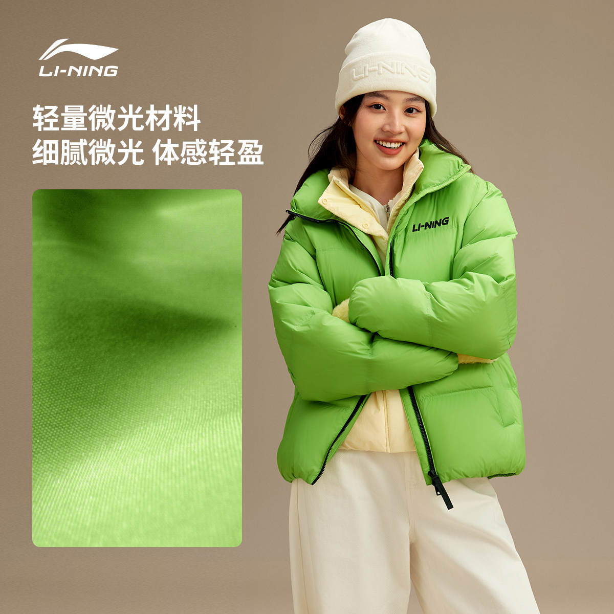 连帽短款 新款 上衣鸭绒棉服女保暖运动外套 女冬季 李宁火锅羽绒服