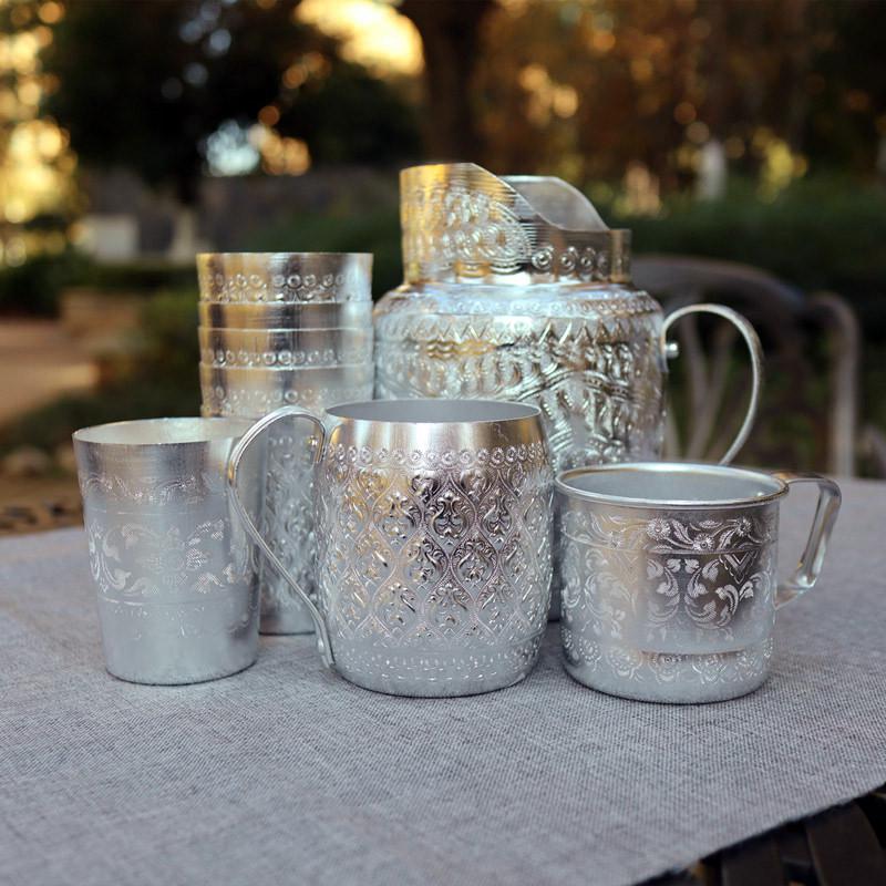 泰式 餐厅锡杯啤酒杯柠檬水杯商用冷饮杯果汁杯东南亚复古雕花水壶