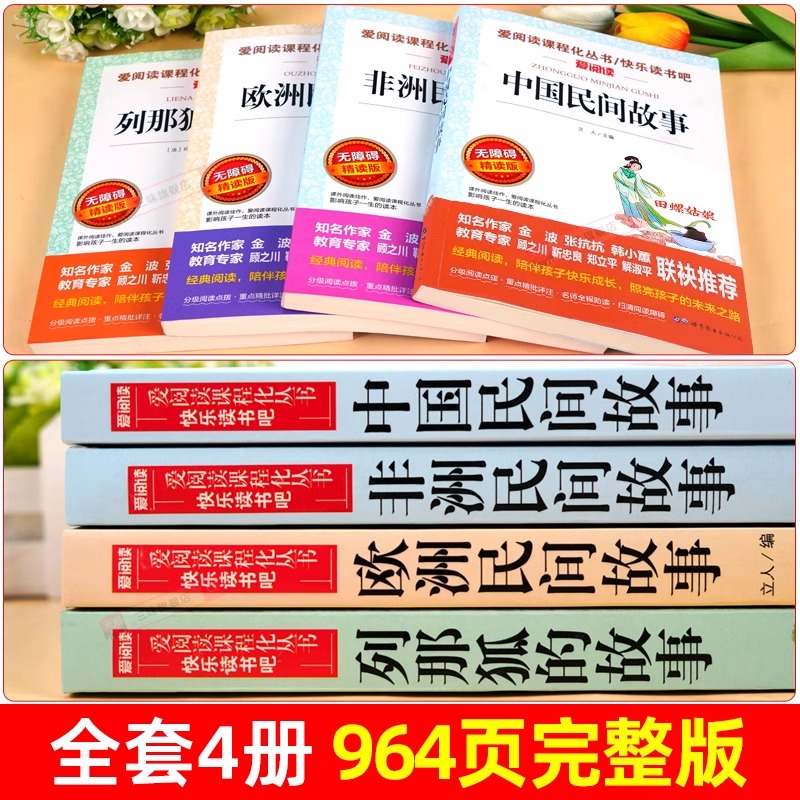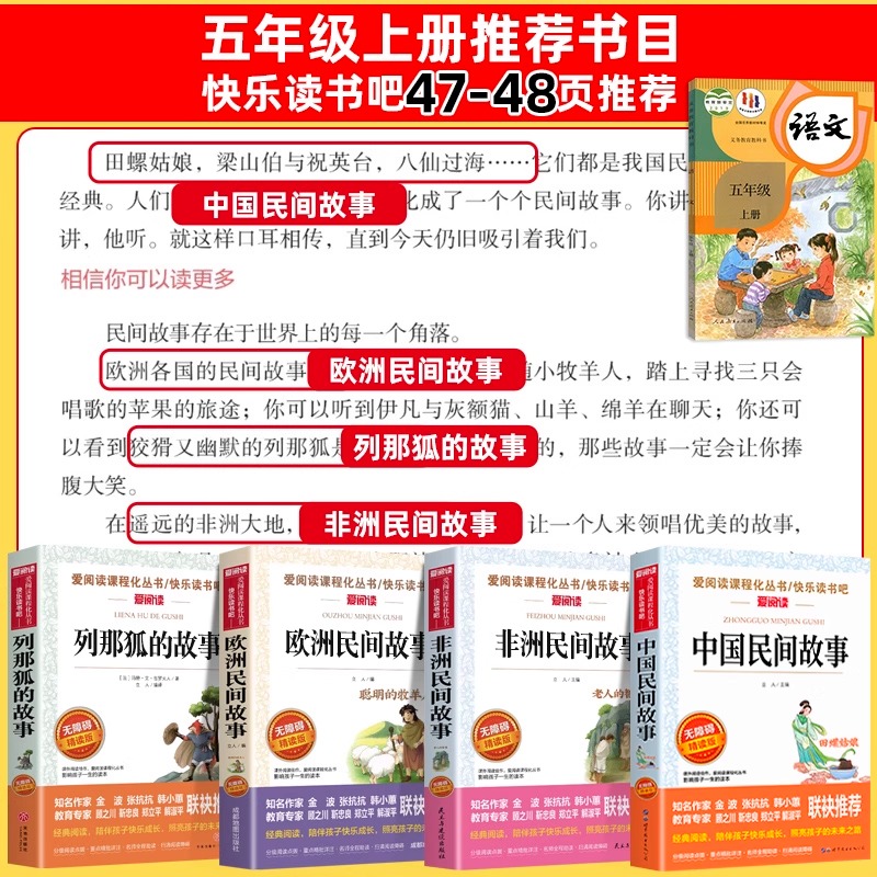 故事快乐读书吧五上阅读书籍配套人教版 课外书田螺姑娘精选欧洲非洲民间列那狐 书目 中国民间故事五年级上册必读正版 全套4册