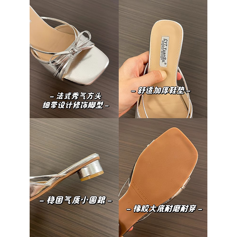 one 气质优雅粗跟一字拖鞋 法式 2025新款 女温柔风 风凉拖鞋 ocean