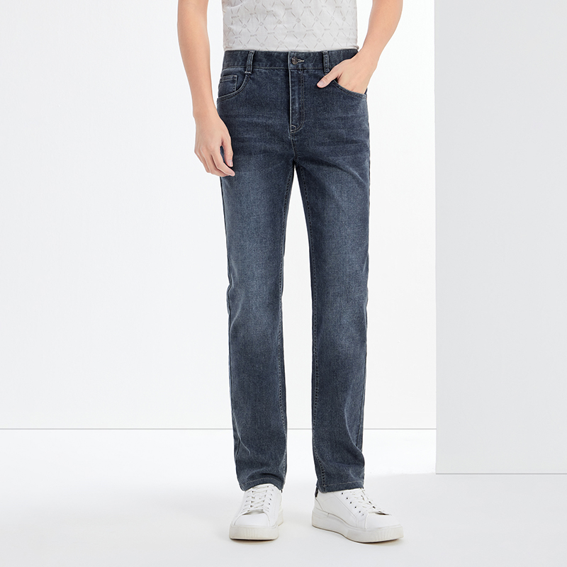 中腰弹力牛仔直筒裤 男裤 13115858 男秋冬新款 佐丹奴复古水洗牛仔裤
