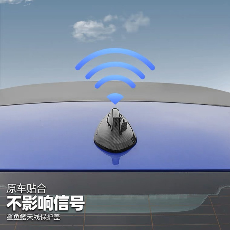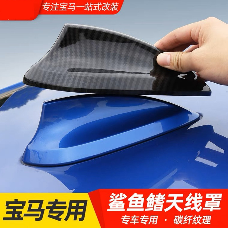 鲨鱼鳍防水保护罩亮黑 宝马X5天线碳纤维纹天线盖改装 适用14 22款