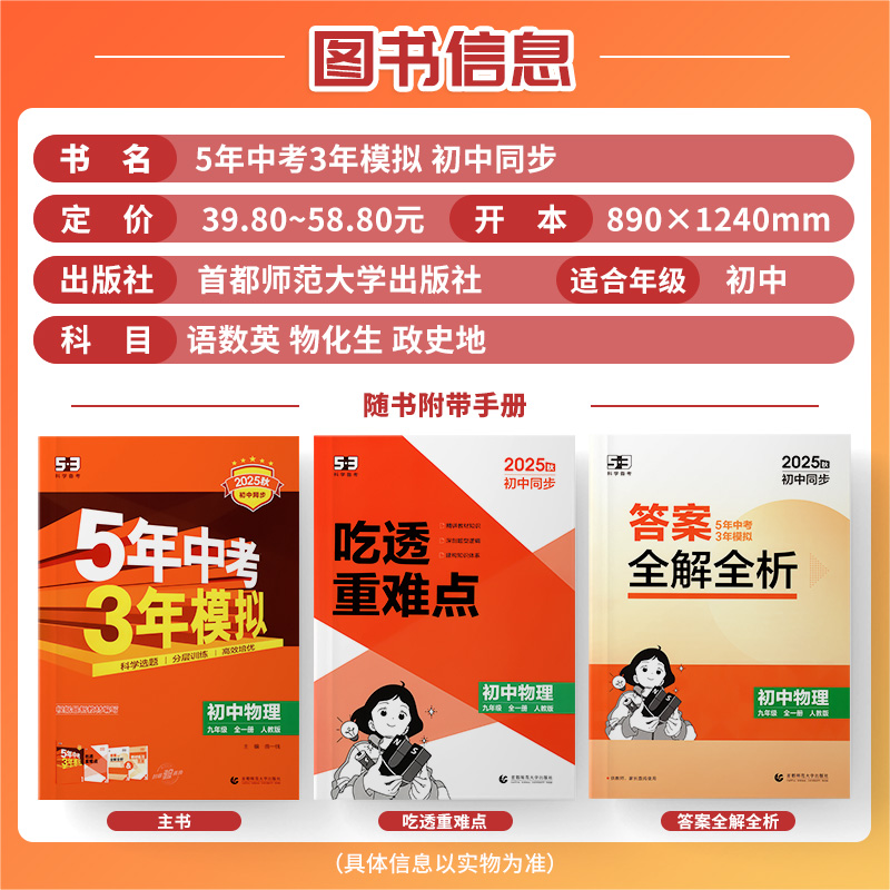 2025曲一线53初中同步练习册七八九年级上下册语文数学英语化学物理生物历史政治地理人教北师外研版 五年中考三年模拟同步全解