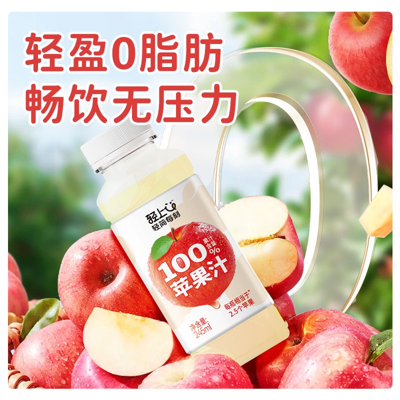 轻上100%果汁红心苹果汁饮料甄选陕西红富士苹果0脂饮品正品 健康