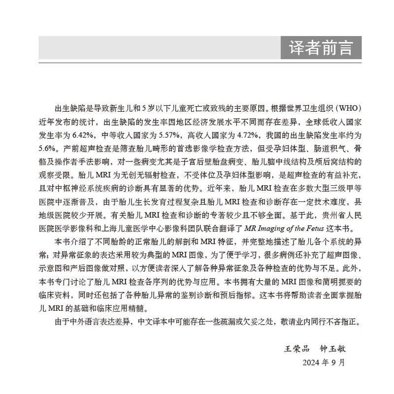 钟玉敏主译 王荣品 适用各级影像科医生及妇产科科医生 胎儿磁共振诊断初学者学习 社 胎儿磁共振成像 科学出版 中文翻译版