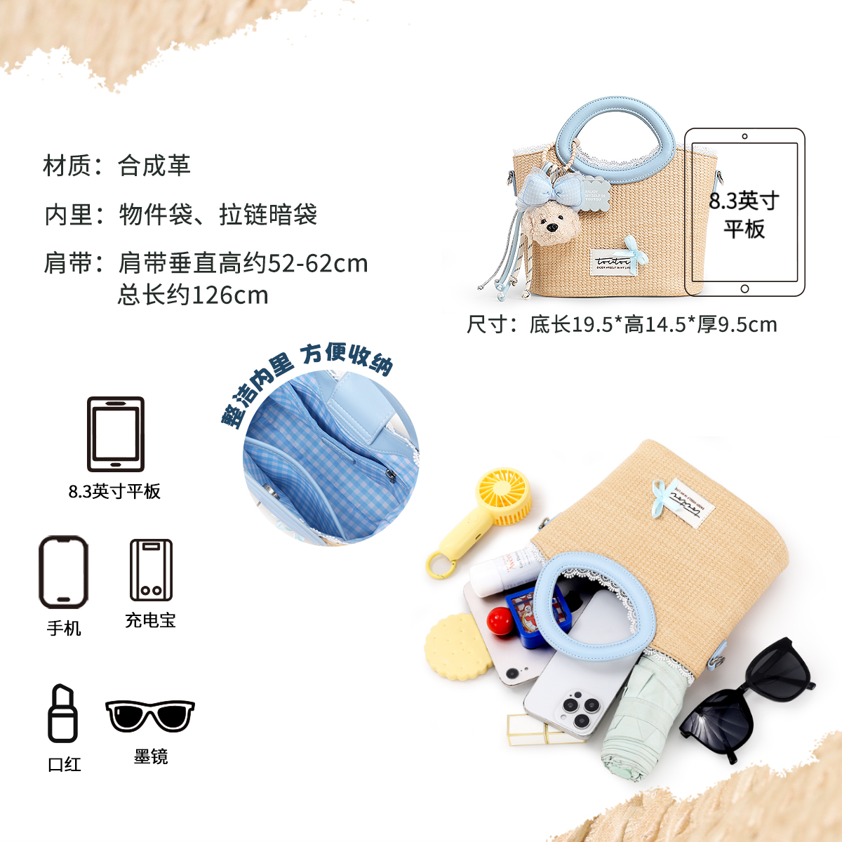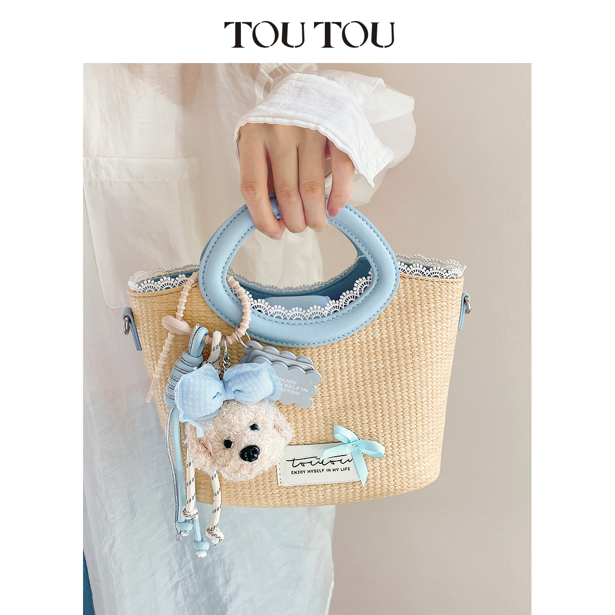 TOUTOU2025新款 小狗草编菜篮子包水桶包夏天配裙子海边沙滩斜挎包