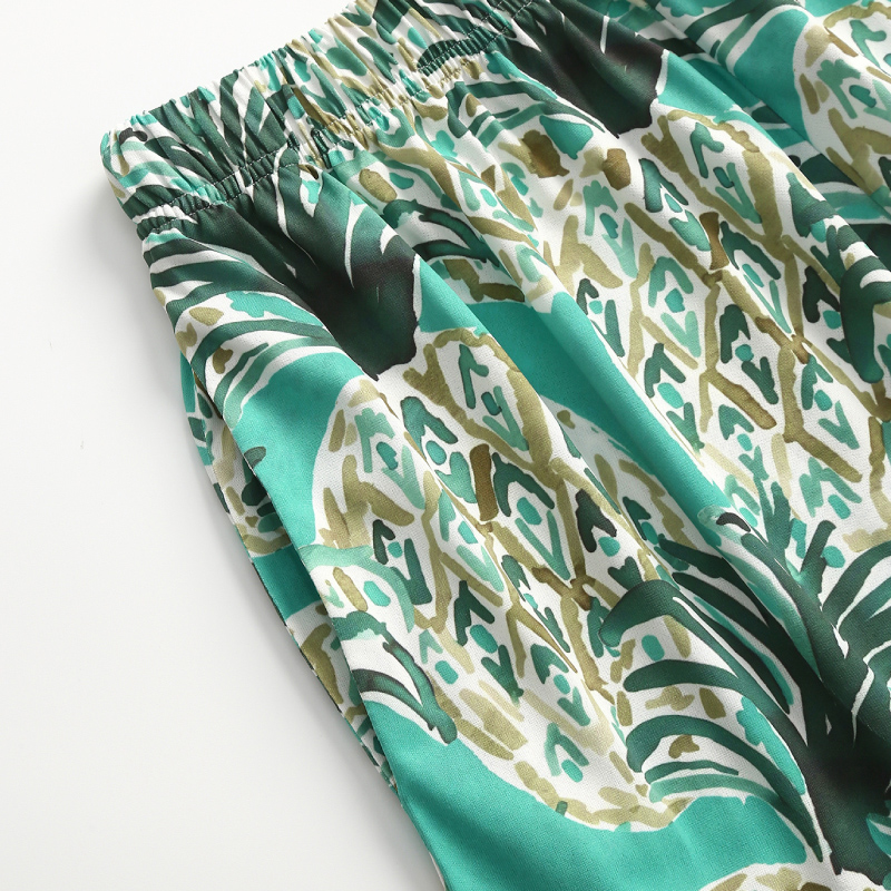 短裤 A类纯棉双层纱绿色可爱女孩印花宽松日系阔腿遛弯家居裤 睡裤