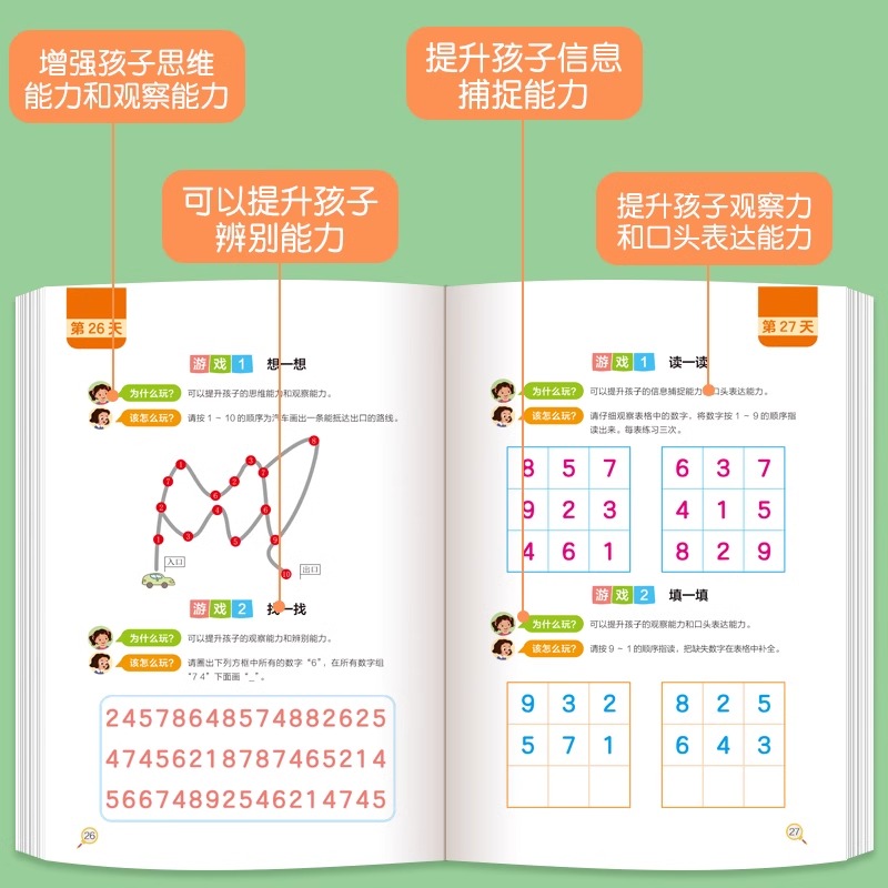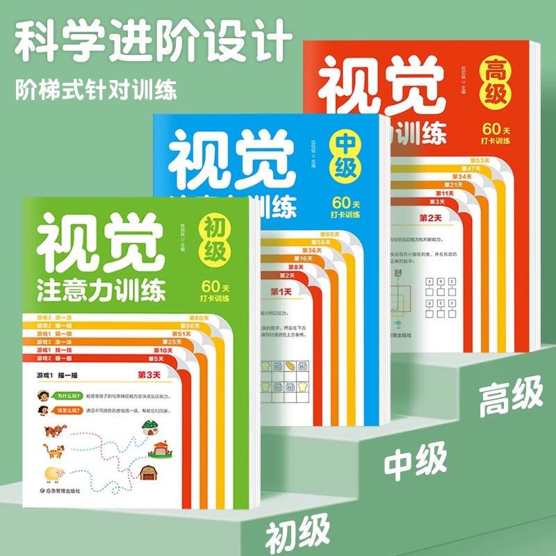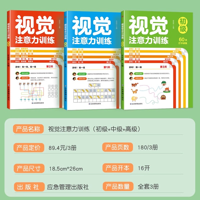 视觉注意力训练专注力训练4岁以上儿童专注力集中训练书籍5 8岁逻辑思维训练书益智游戏书小学生一年级听觉抗干扰训练注意力全3册