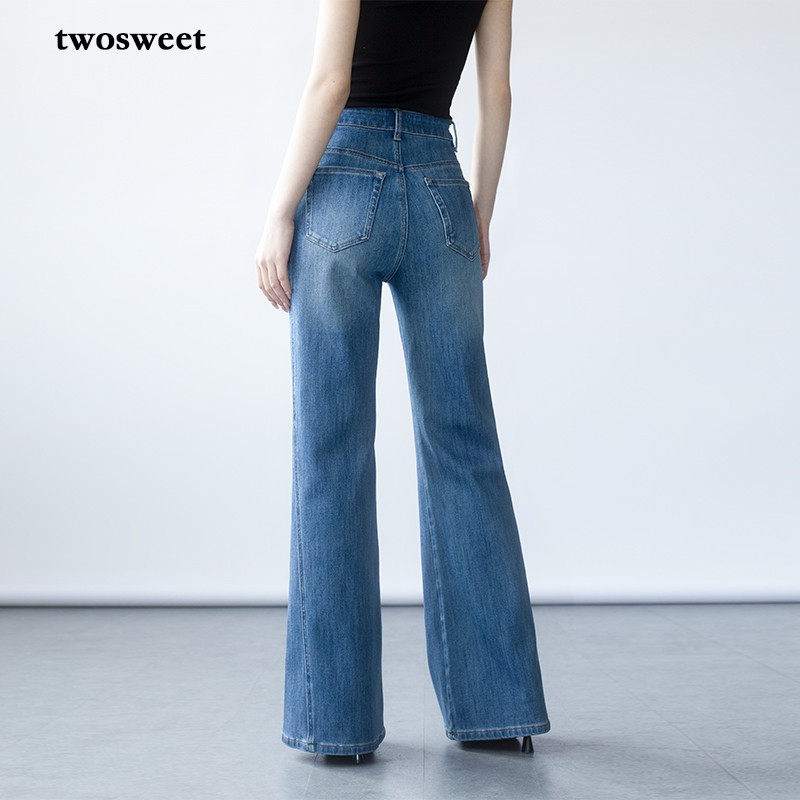 休闲潮流复古低腰喇叭长裤 HM女装 软牛仔时尚 秋季 1239854 牛仔裤
