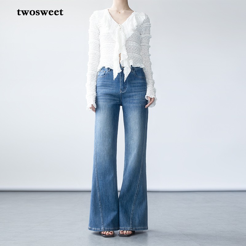 女士牛仔裤 黑色显瘦喇叭牛仔裤 2025年秋季 复古修身 新款 热风微喇裤