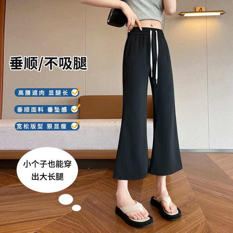 女2025年新款 休闲夏天防晒卫裤 夏季 七分运动裤 子 薄款 冰丝微喇叭裤
