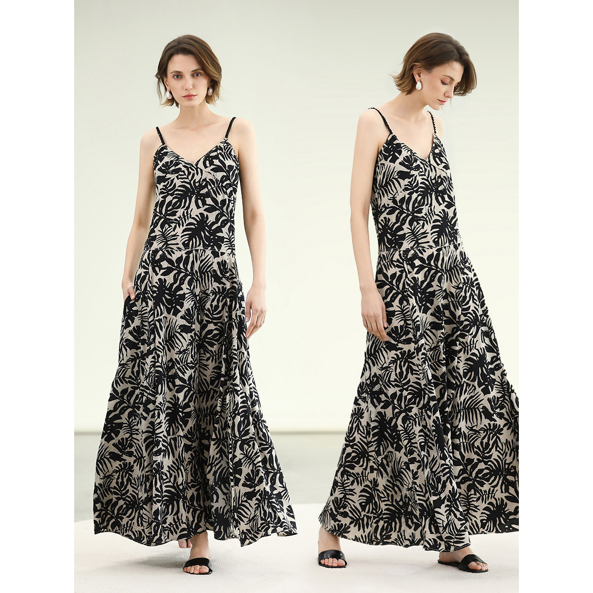 显瘦人造棉旅游度假长款 2025年夏季 棉绸连衣裙女修身 时尚 裙子 新款