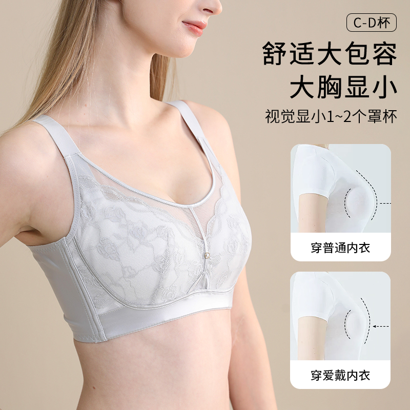 大胸显小文胸罩 防下垂内衣女夏季 超薄款 调整型聚拢收副乳矫正大码
