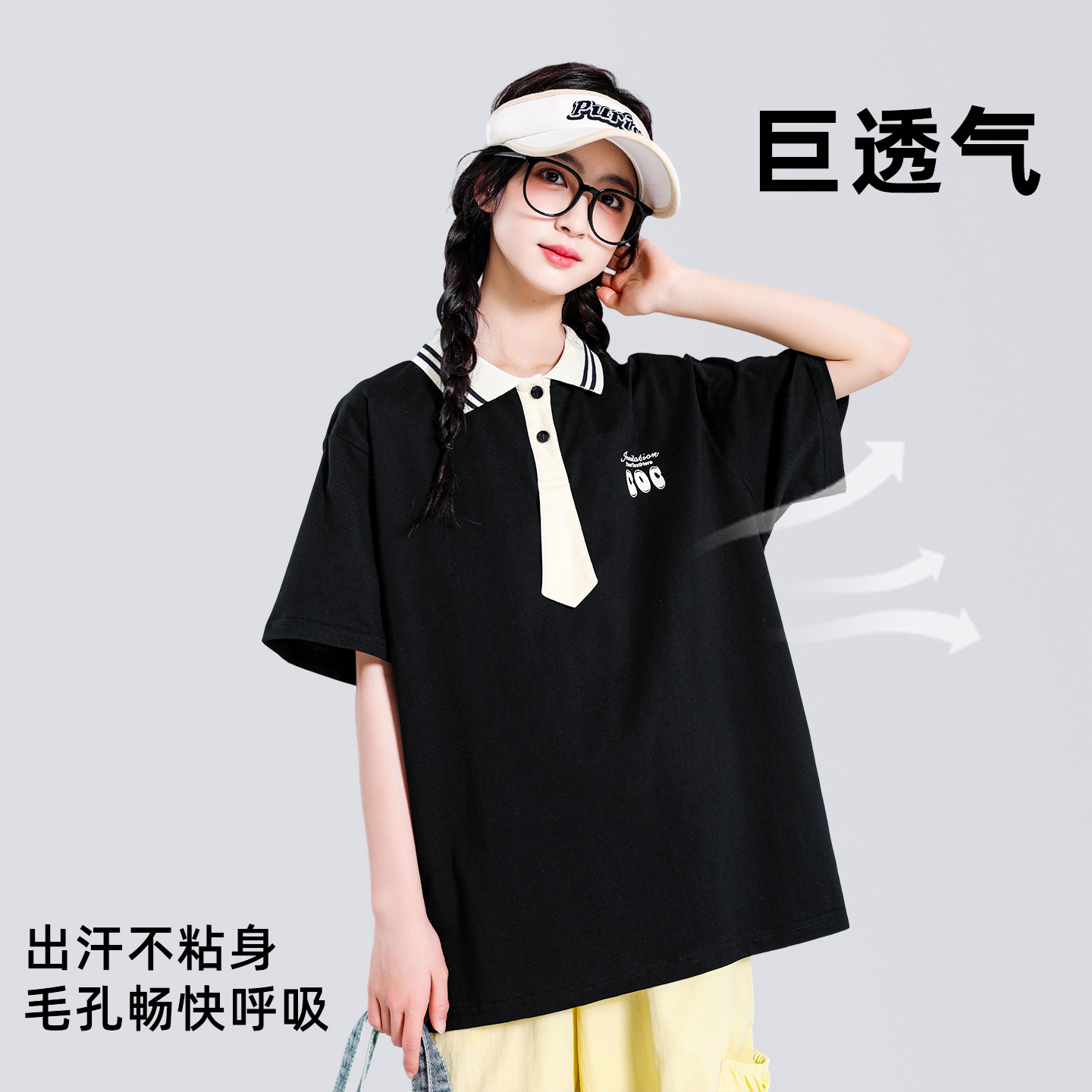 女孩超好看polo衫 2025新款 青少年学院风纯棉t T恤夏装 女大童短袖
