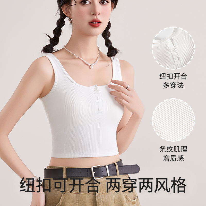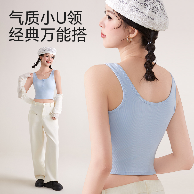 短款 修身 高级纽扣外穿带胸垫背心 夏季 蓝色吊带背心女内搭2025新款