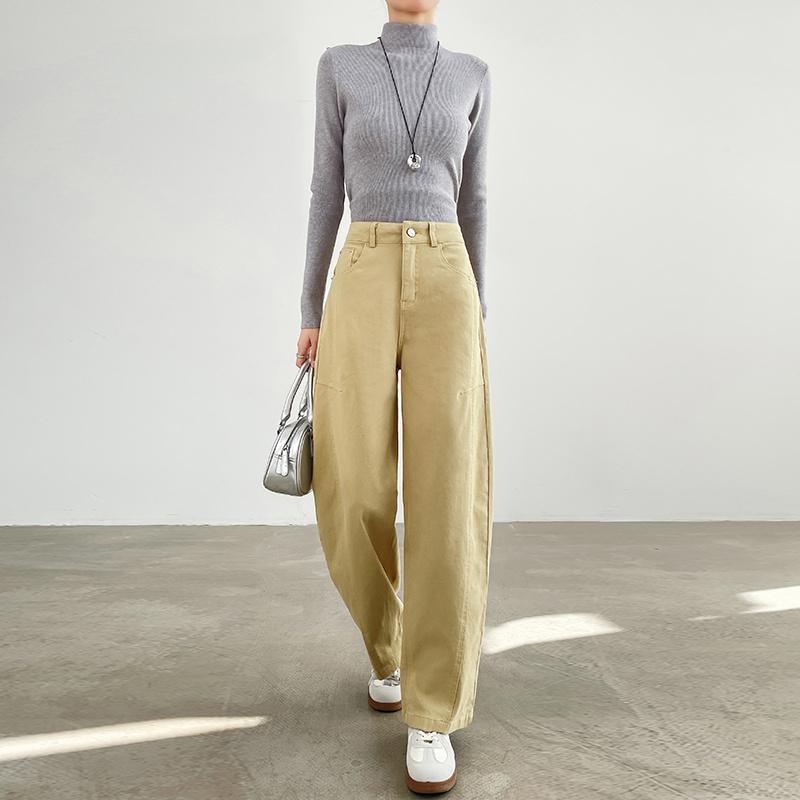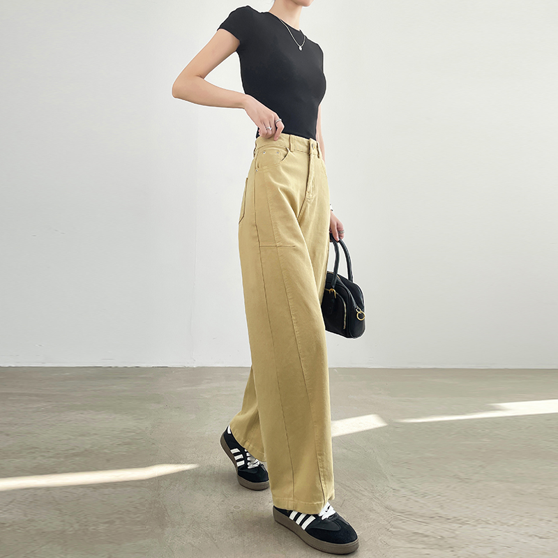 高腰宽松显瘦垂感直筒镰刀裤 粉色设计感弯刀阔腿牛仔裤 女春秋新款