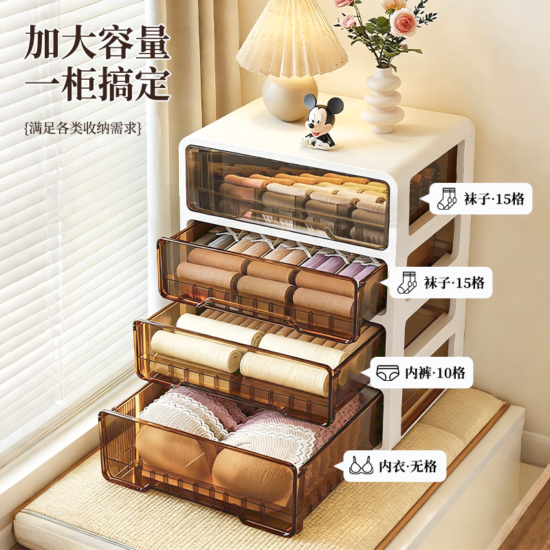 收纳箱抽屉式 子透明整理箱家用衣物储物柜子衣柜塑料内衣收纳盒 裤