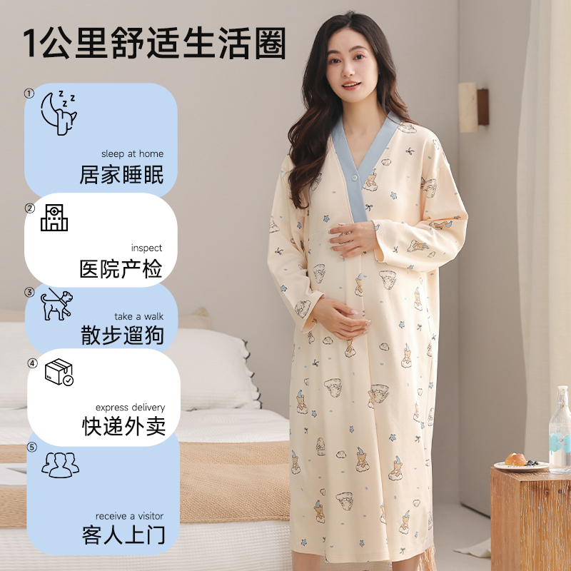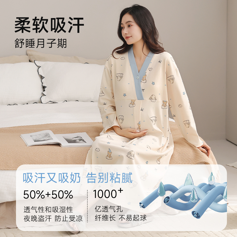 月子裙 大码 猫人纯棉睡裙孕妇进产房夏季 产后带胸垫哺乳睡衣中长款