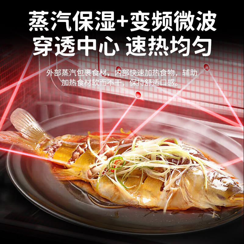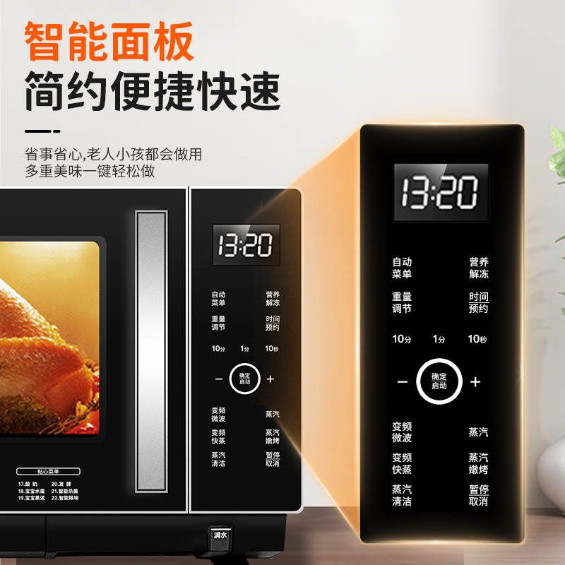 美 变频微波炉家用平板不锈钢23L微烤一体光波炉蒸烤箱正品