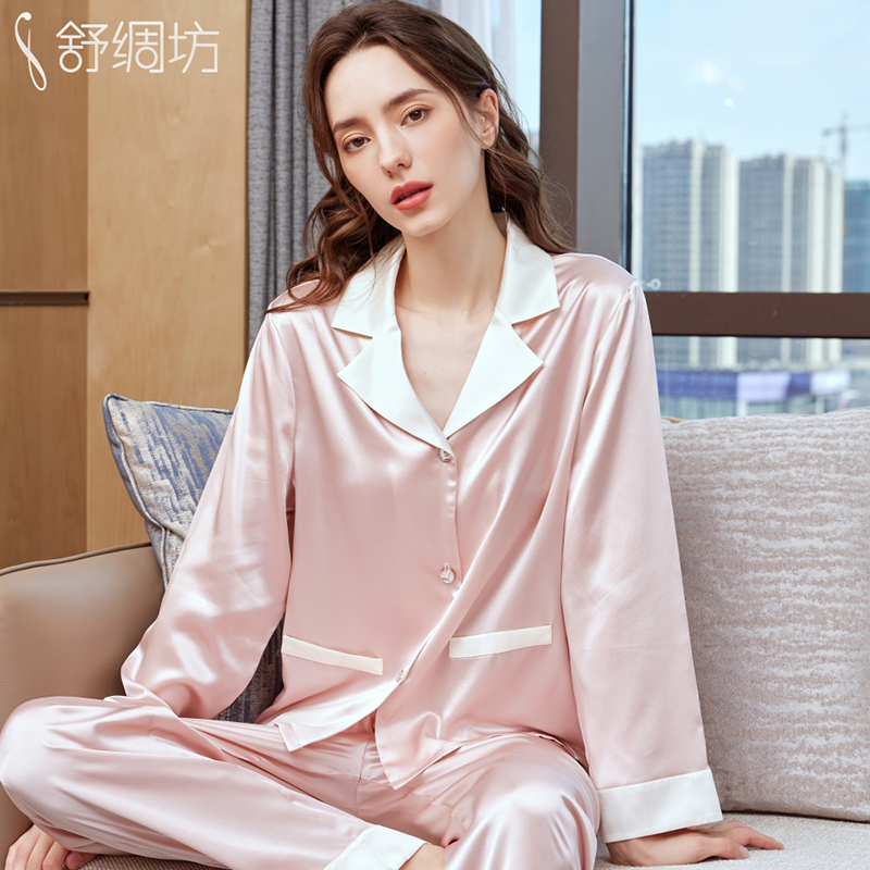 100%桑蚕丝家居服套装 舒绸坊重磅真丝睡衣女士长袖 高级感春夏新款