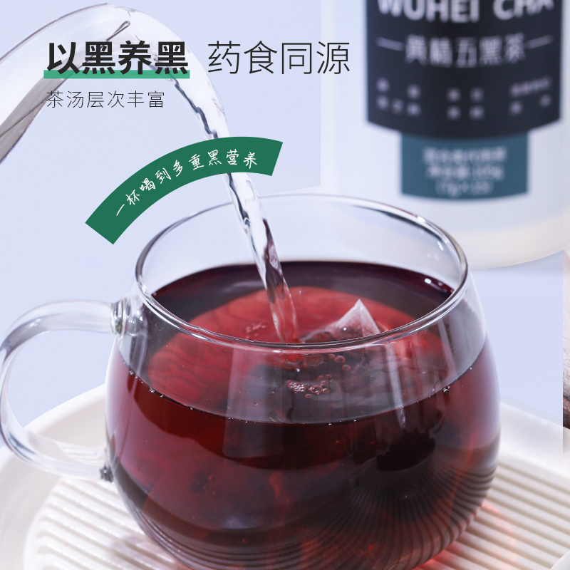 香港虎标黄精五黑茶桑葚黑豆黑枸杞黑芝麻黑米袋泡茶105g
